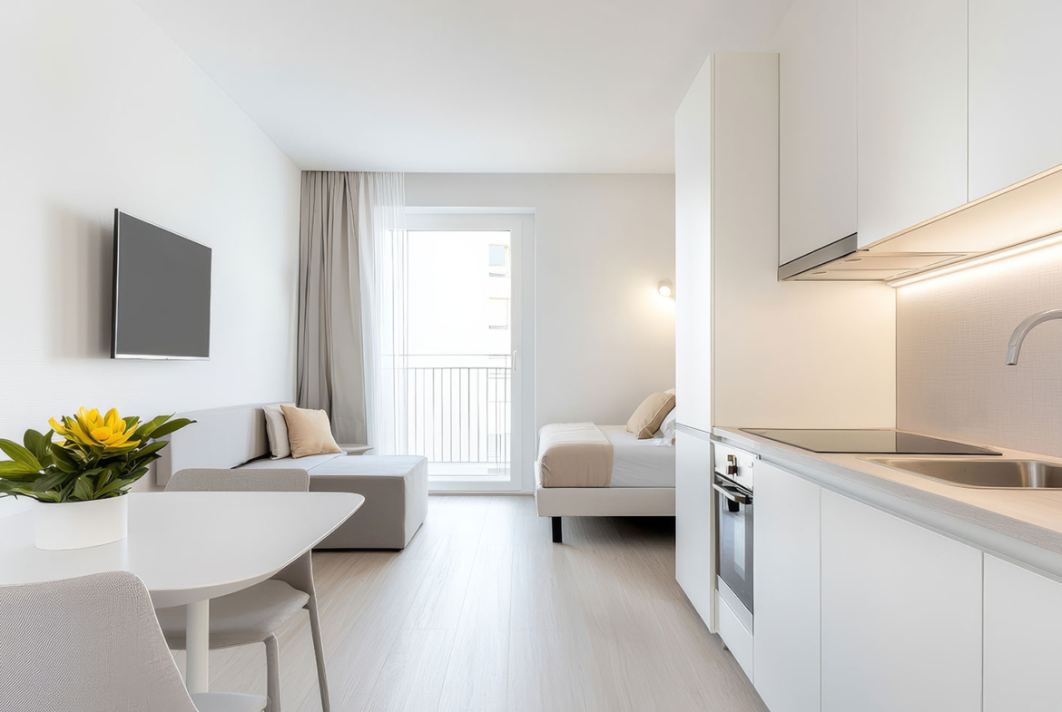Charming studio apartment designed for efficiency and style. Features include a bright living area, modern kitchenette, walk-in closet, and balcony with city views. Ideal for first-time buyers or as an investment property, located minutes from entertainment, dining, and transit.